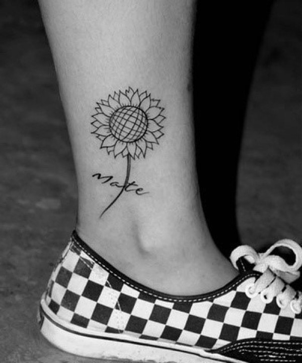 脚部向日葵英文纹身图片图案_英文纹身图案大全_纹身图吧