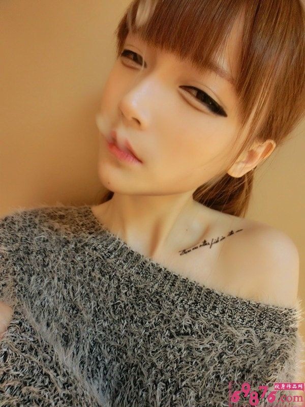 非主流美女锁骨英文刺青_英文纹身图案大全_纹身图吧