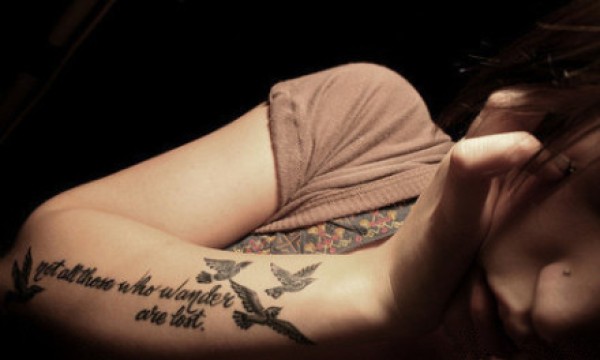 女生手臂英文小鸟纹身图案图片_英文纹身图案大全_纹身图吧