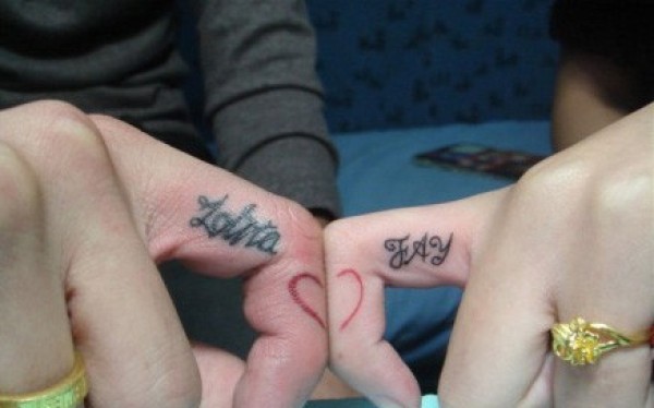 情侣手指英文心形纹身图案图片_英文纹身图案大全_纹身图吧