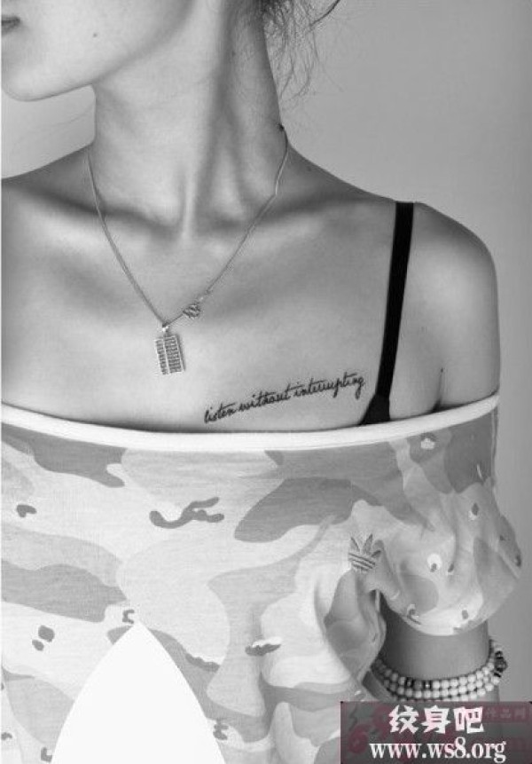 清新英文锁骨黑白纹身_英文纹身图案大全_纹身图吧