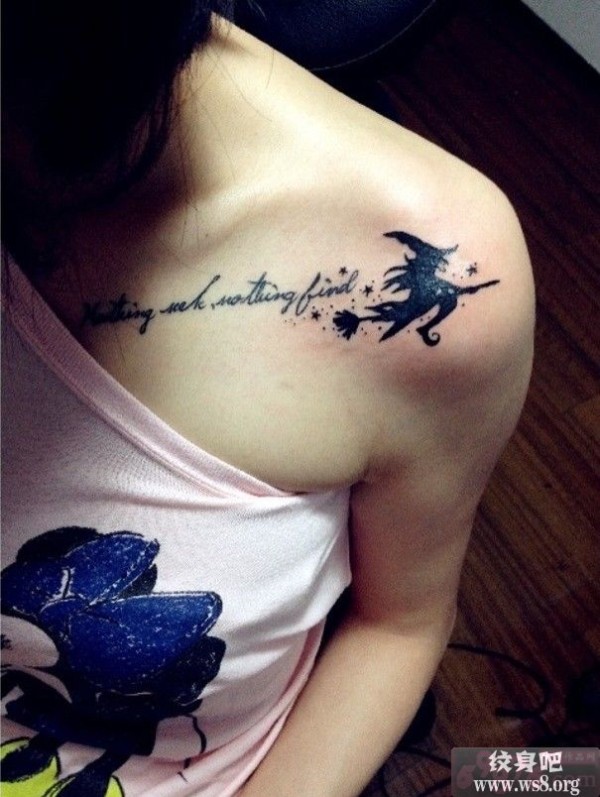 魔法女巫英文肩部纹身图案_英文纹身图案大全_纹身图吧
