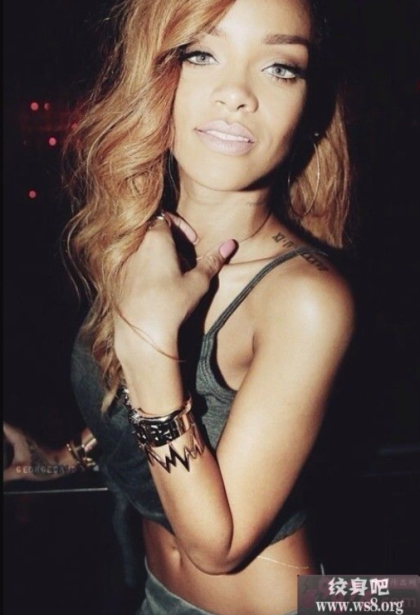 蕾哈娜性感香肩英文图案_英文纹身图案大全_纹身图吧