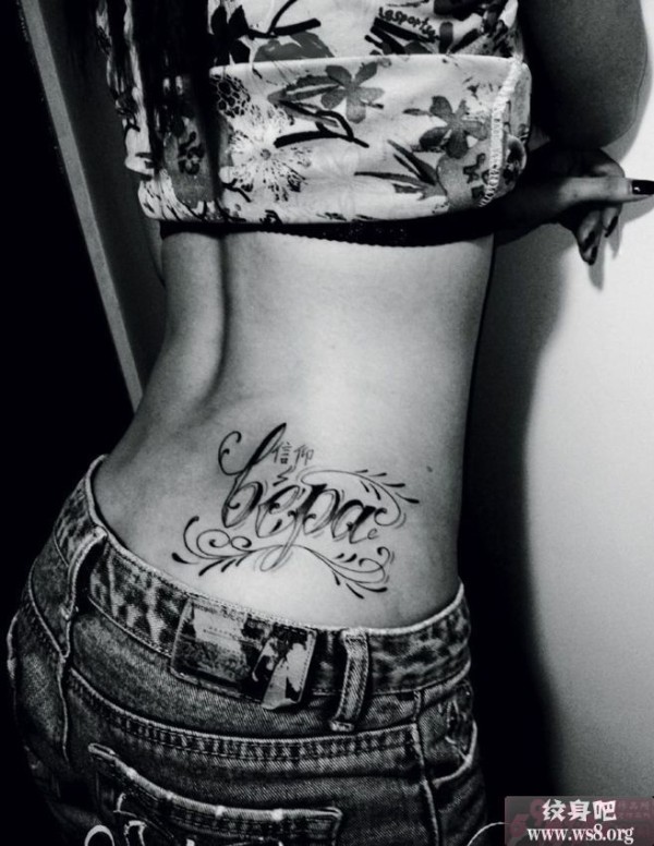 性感腰部黑白英文汉字纹身_英文纹身图案大全_纹身图吧