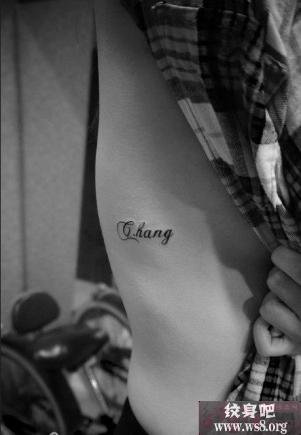 黑白英文字母性感腰部纹身_英文纹身图案大全_纹身图吧