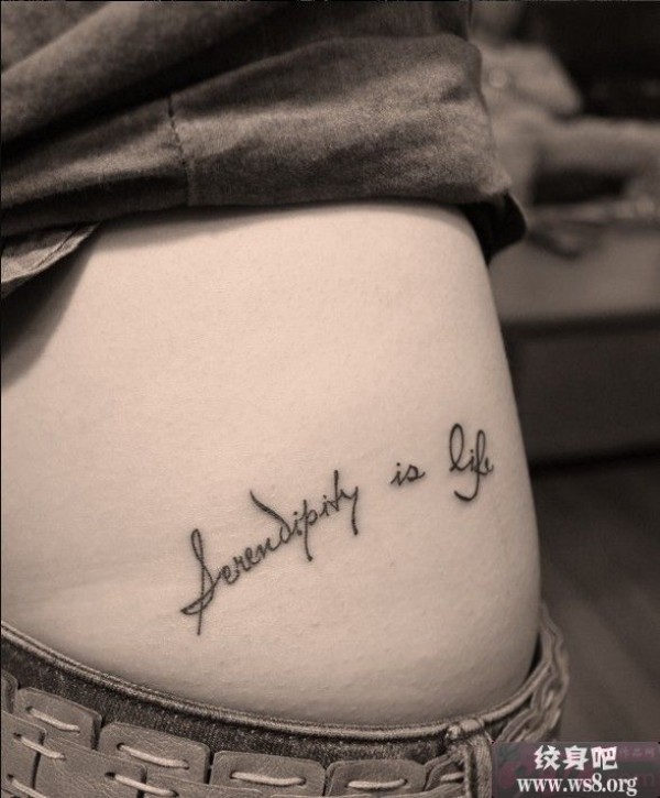 黑白英文清新腰部纹身_英文纹身图案大全_纹身图吧