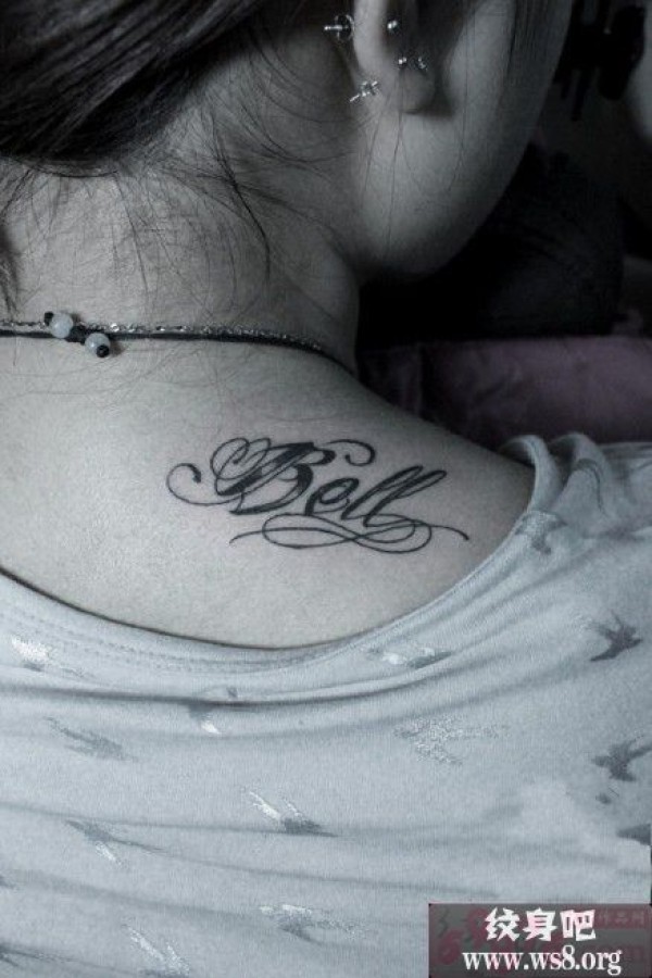 黑白英文唯美香肩纹身_英文纹身图案大全_纹身图吧