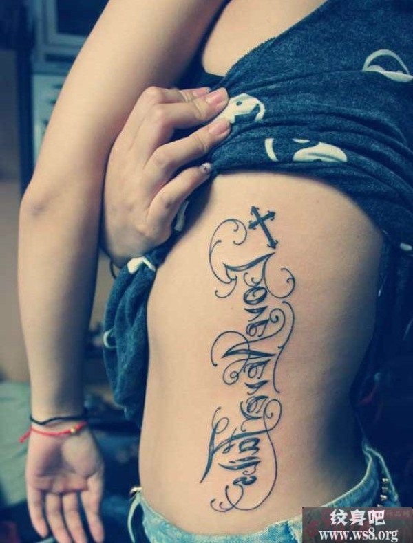 设计感花体英文腰部刺青_英文纹身图案大全_纹身图吧