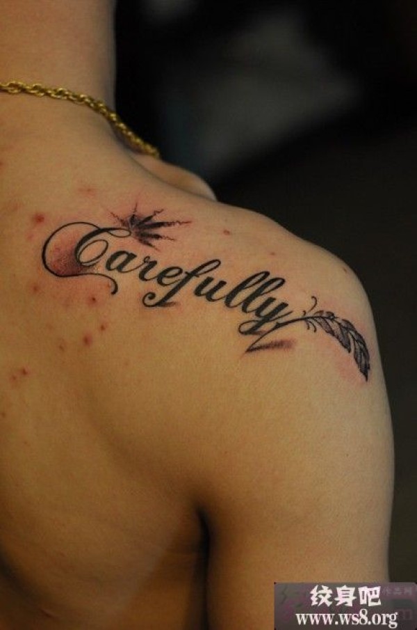 羽毛英文肩部纹身_英文纹身图案大全_纹身图吧