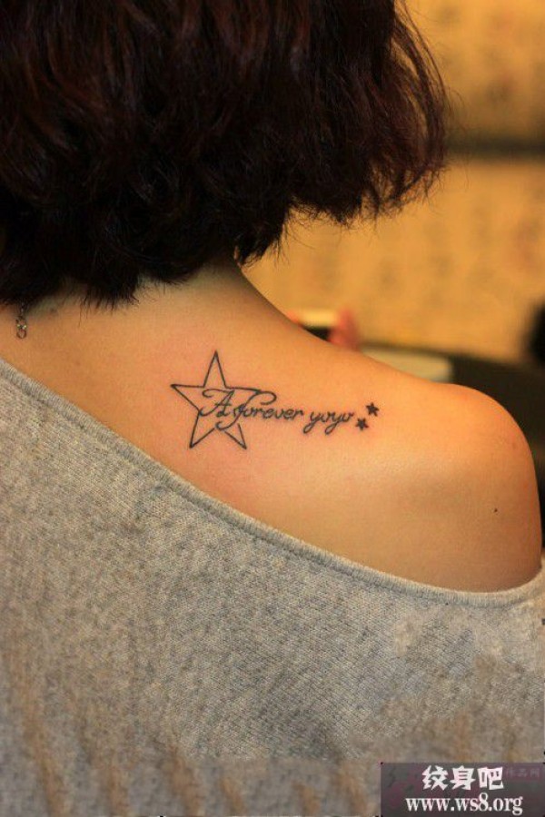 女孩肩上星星英文清新纹身图图案_英文纹身图案大全_纹身图吧