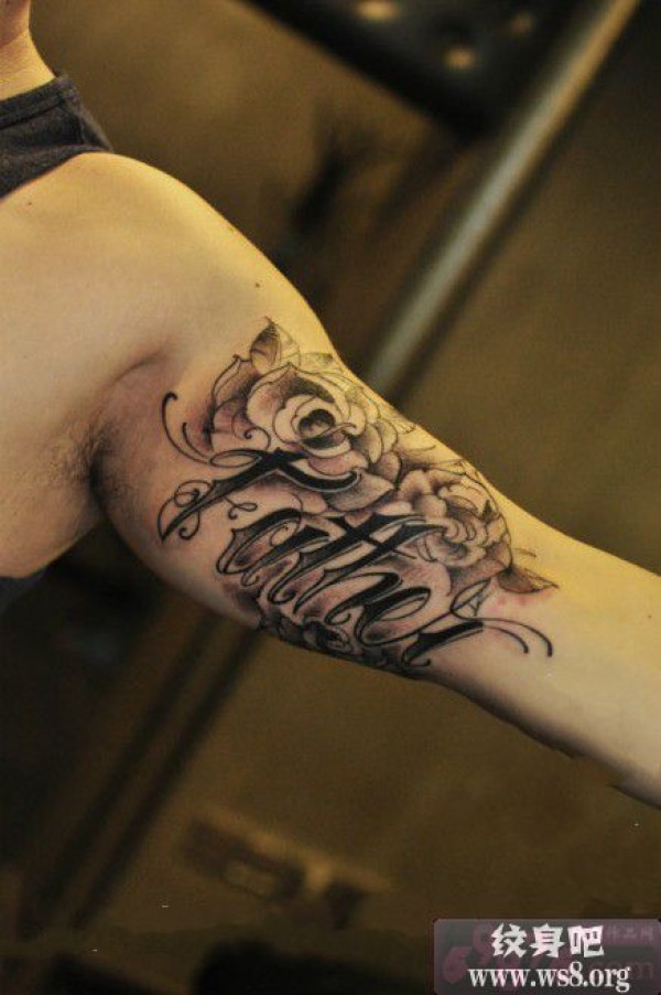 欧美手臂玫瑰英文纹身_英文纹身图案大全_纹身图吧