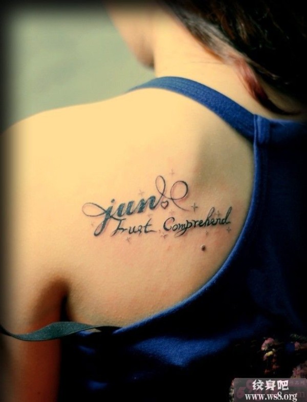 后肩花体英文纹身_英文纹身图案大全_纹身图吧