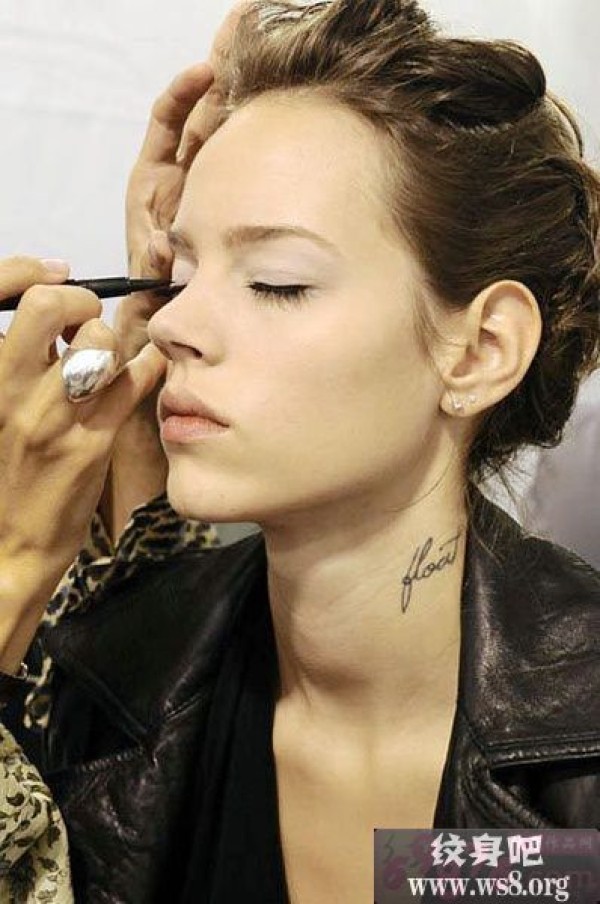欧美超模时尚英文脖子刺青图案_英文纹身图案大全_纹身图吧