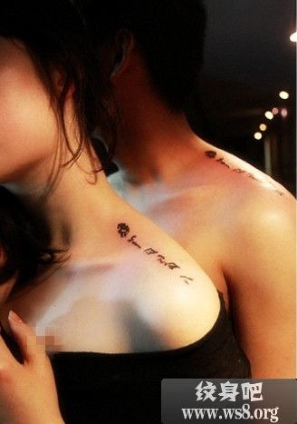 个性情侣肩部英文抽象字符图案_英文纹身图案大全_纹身图吧