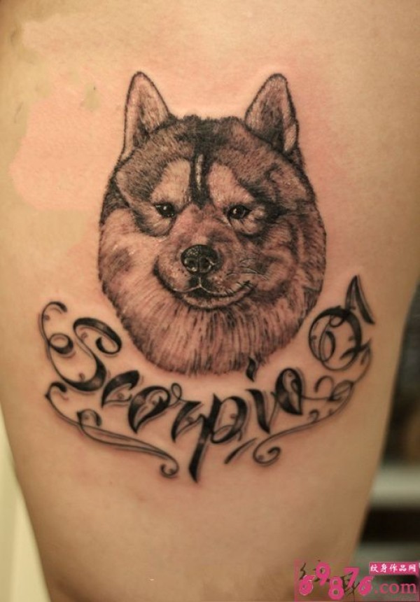 雪狼狗头像手臂英文刺青_英文纹身图案大全_纹身图吧