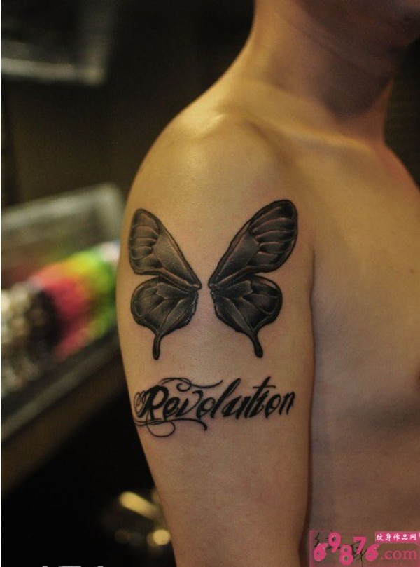 蝴蝶英文手臂纹身_英文纹身图案大全_纹身图吧