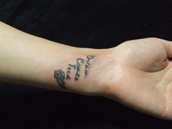 手腕处一只小翅膀和英文的纹身_英文纹身图案大全_纹身图吧