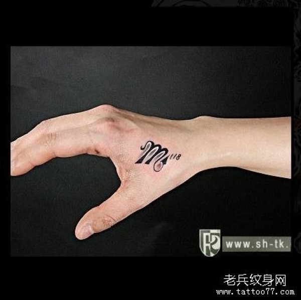 手部张扬的英文字M纹身图片_英文纹身图案大全_纹身图吧