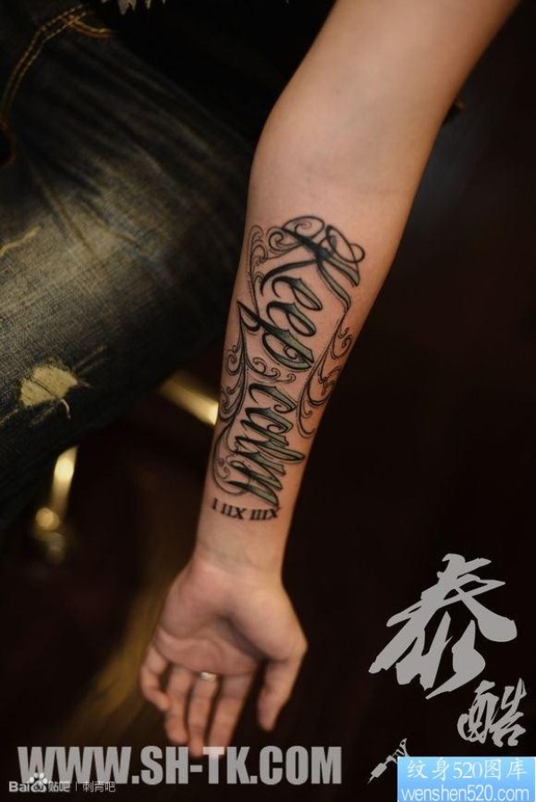 男生手臂重彩英文字纹身图片_英文纹身图案大全_纹身图吧