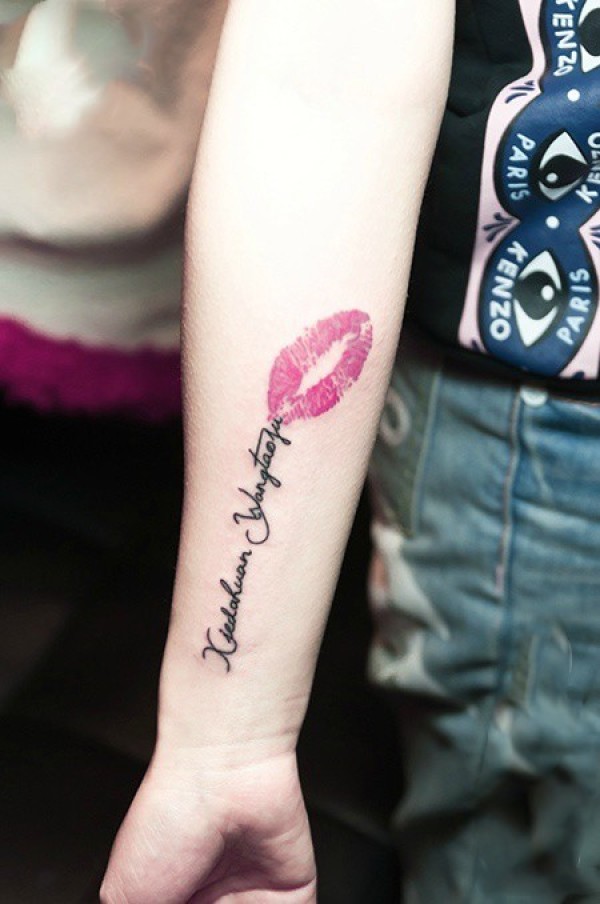 粉色红唇英文手臂纹身图案_英文纹身图案大全_纹身图吧