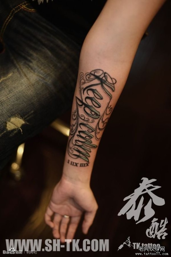 男人手臂重彩英文字纹身图案_英文纹身图案大全_纹身图吧