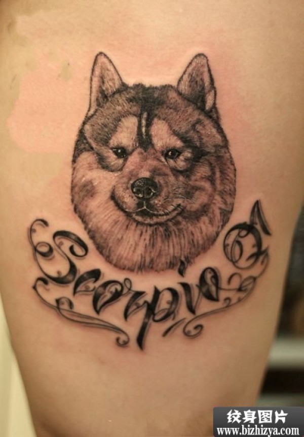 雪狼狗头像手臂英文刺青图案图片_英文纹身图案大全_纹身图吧