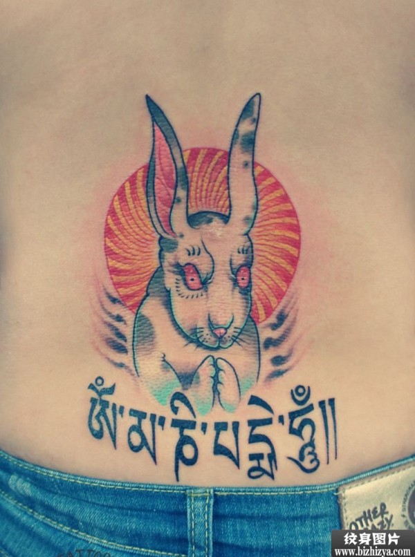 后腰可爱小兔仙英文纹身图案图片_英文纹身图案大全_纹身图吧