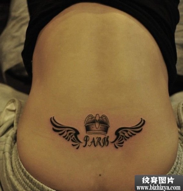 后腰英文皇冠翅膀刺青图案图案图片_英文纹身图案大全_纹身图吧