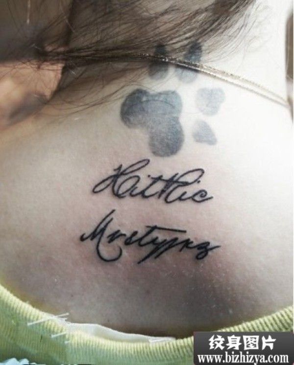 后颈可爱爪印英文刺青图案图片_英文纹身图案大全_纹身图吧
