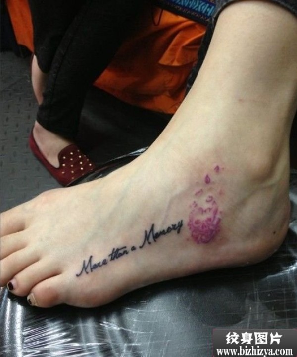 脚背飞舞花瓣英文刺青图案图片_英文纹身图案大全_纹身图吧