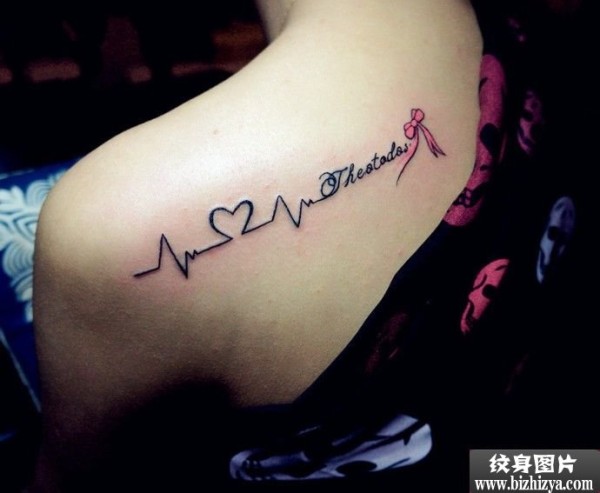 左肩心电图英文刺青图案图片_英文纹身图案大全_纹身图吧