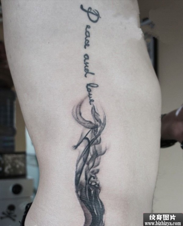 创意腰部水墨画英文纹身图案图片_英文纹身图案大全_纹身图吧