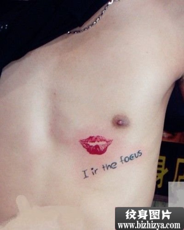 男人胸部红唇印个性英文刺青图案图片_英文纹身图案大全_纹身图吧