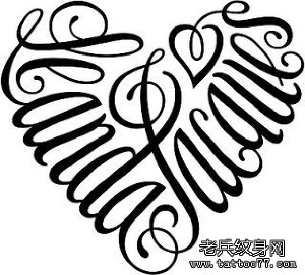 推荐一款文字爱心纹身图案_英文纹身图案大全_纹身图吧
