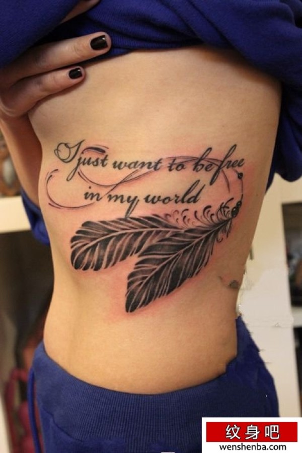 唯美的英文羽毛纹身图案_英文纹身图案大全_纹身图吧