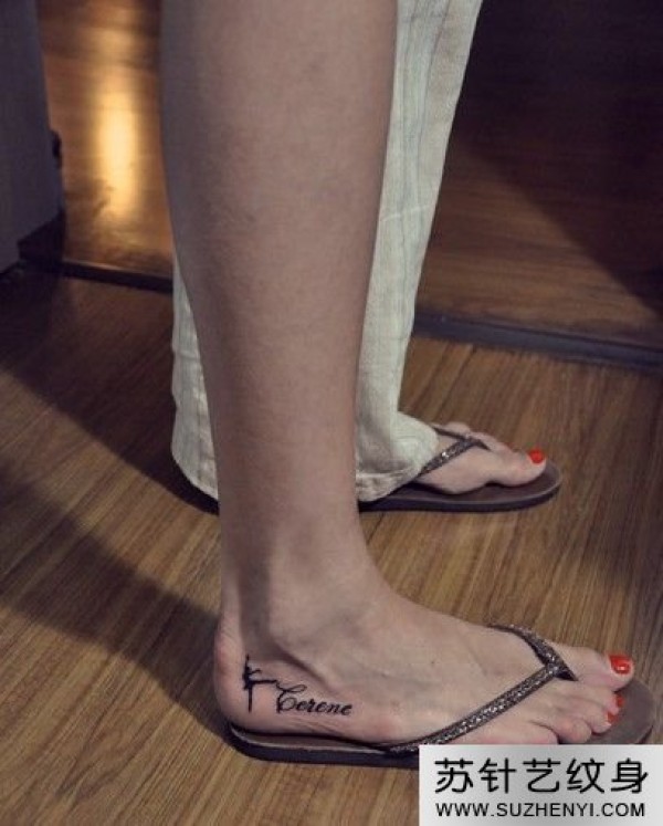 脚背芭蕾女孩英文刺青_英文纹身图案大全_纹身图吧