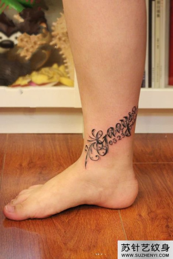 花体英文设计脚踝纹身_英文纹身图案大全_纹身图吧