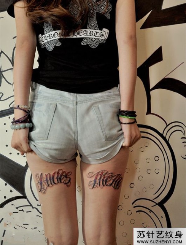 大腿时尚花体英文纹身_英文纹身图案大全_纹身图吧
