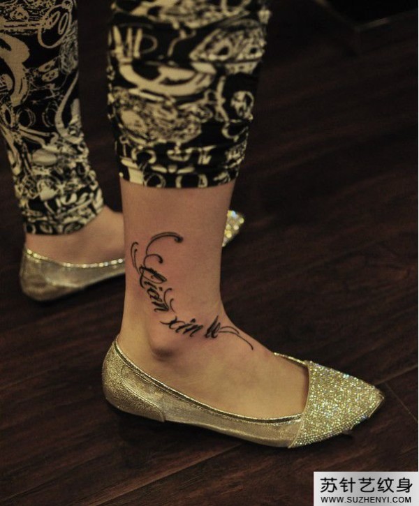 英文羽毛创意脚踝纹身_英文纹身图案大全_纹身图吧