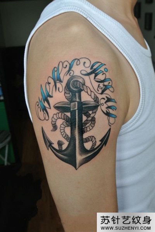 花体英文锚手臂纹身_英文纹身图案大全_纹身图吧