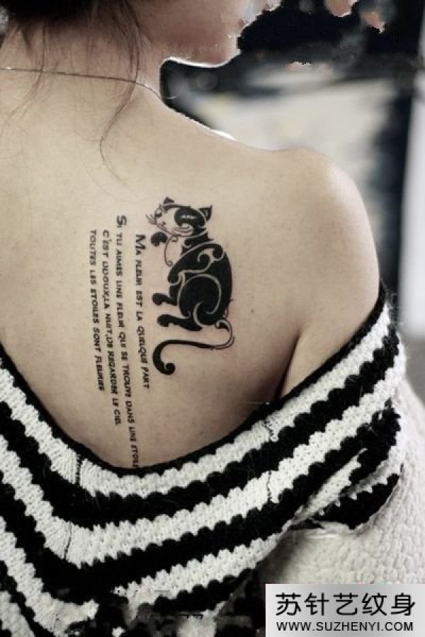 后肩另类猫咪英文纹身_英文纹身图案大全_纹身图吧