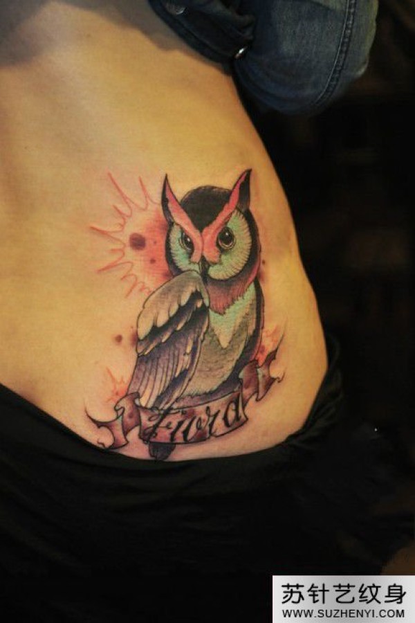 腰部猫头鹰英文刺青_英文纹身图案大全_纹身图吧