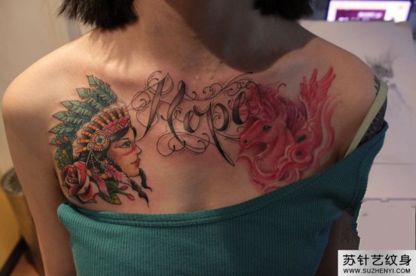 胸口红色独角兽英文纹身_英文纹身图案大全_纹身图吧
