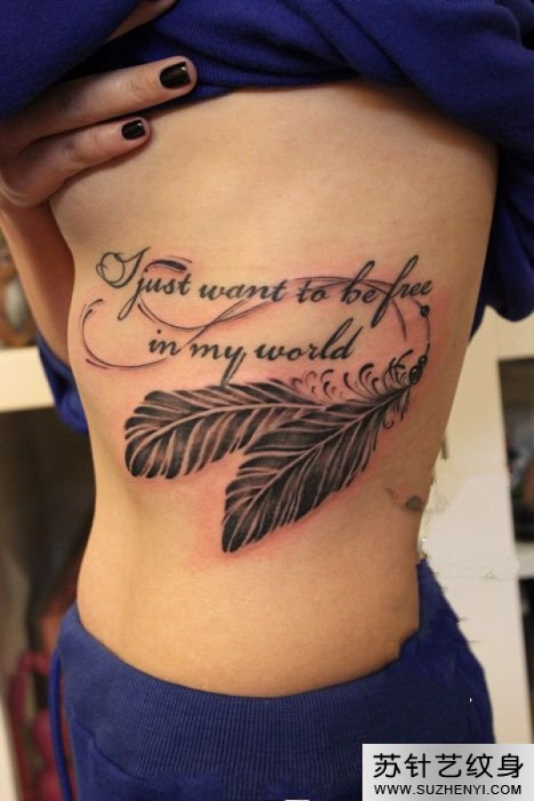 英文羽毛胸侧纹身_英文纹身图案大全_纹身图吧