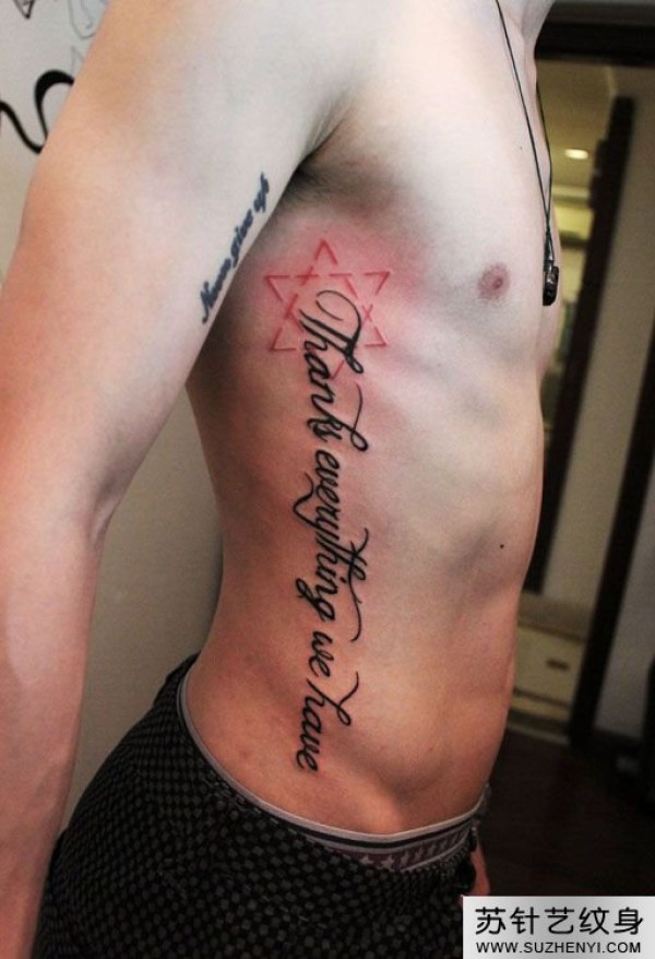 六角芒星花体英文侧腰纹身_英文纹身图案大全_纹身图吧