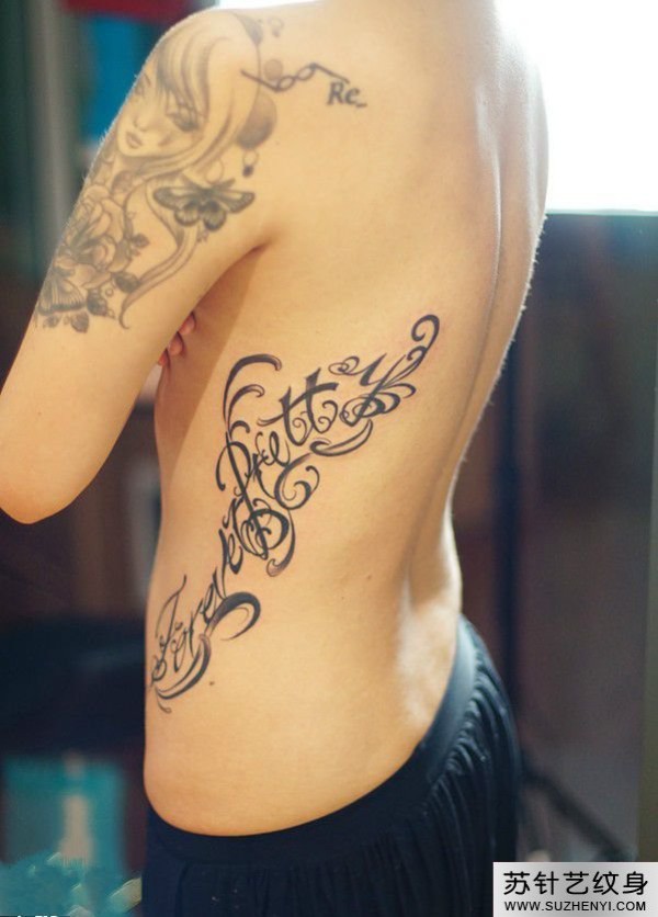唯美腰部创意花体英文纹身图片_英文纹身图案大全_纹身图吧