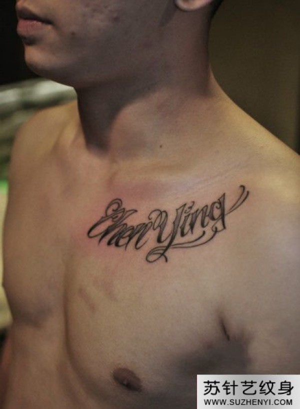时尚完美简洁花体英文胸部纹身_英文纹身图案大全_纹身图吧
