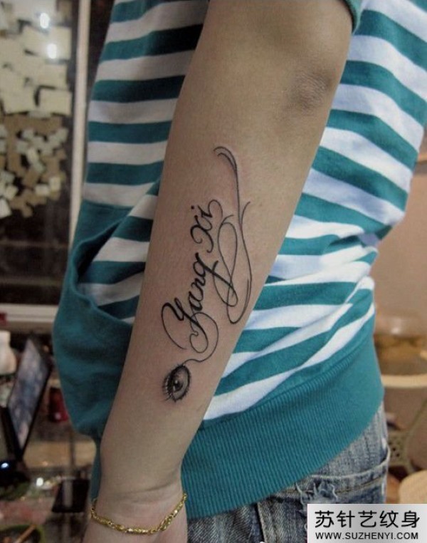 最新完美英文线条眼睛手臂创意纹身_英文纹身图案大全_纹身图吧