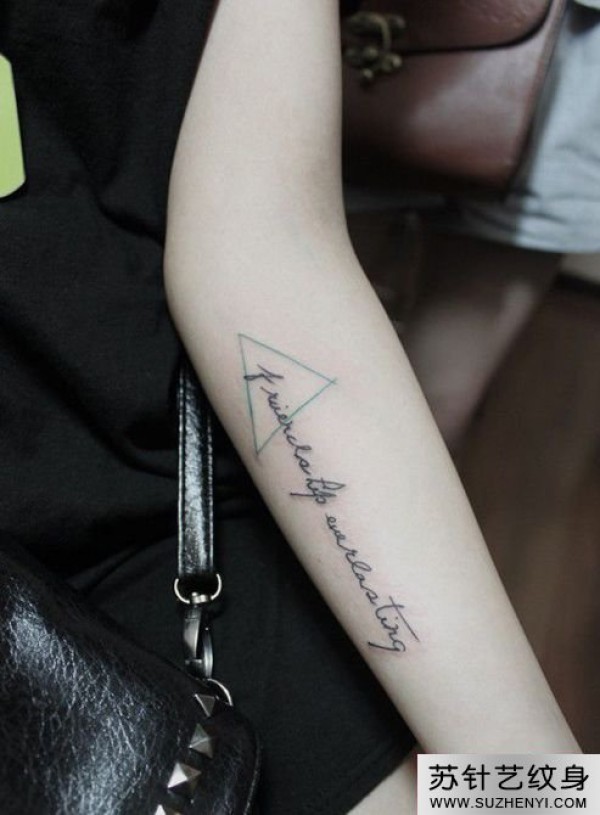 简洁这个性小臂内侧三角形英文纹身_英文纹身图案大全_纹身图吧