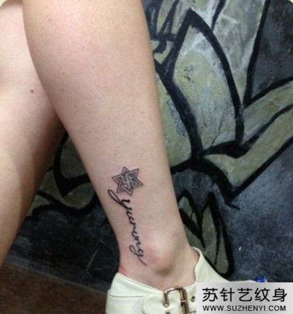 时尚六角芒星英文纹身小图案图_英文纹身图案大全_纹身图吧